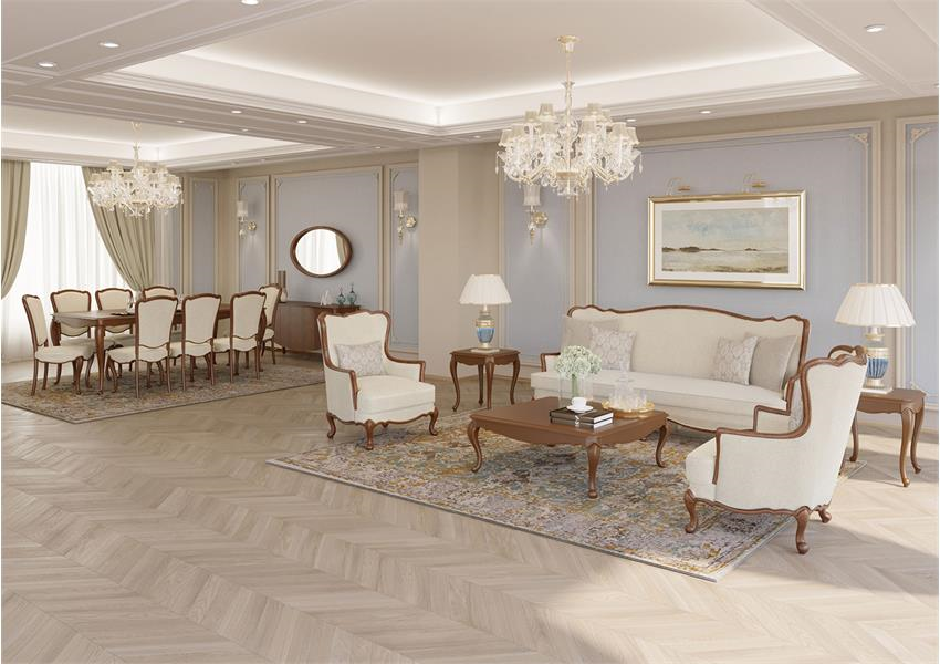 Delan furniture is exclusively handcrafted with high-end quality materials, a harmonious combination of solid wood carvings and precious fabrics. Critical elements of reliable classic design can be found in Delan furniture, coffee tables, and dining set which make your room an eye-catching comfort zone.