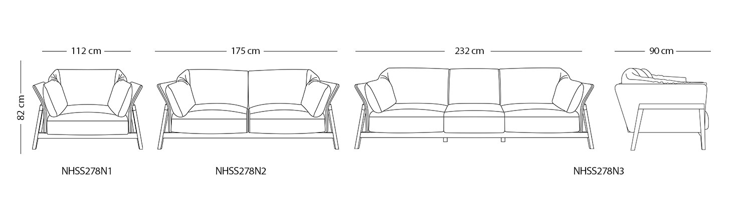 The Milan Sofa is presented in a contemporary Italian style. Legs are made of beech wood the arms and back are made of metal and wood upholstered in leather or fabric.