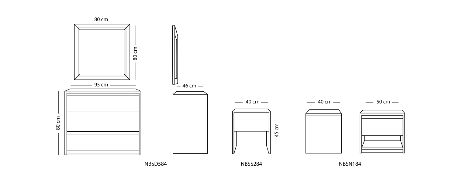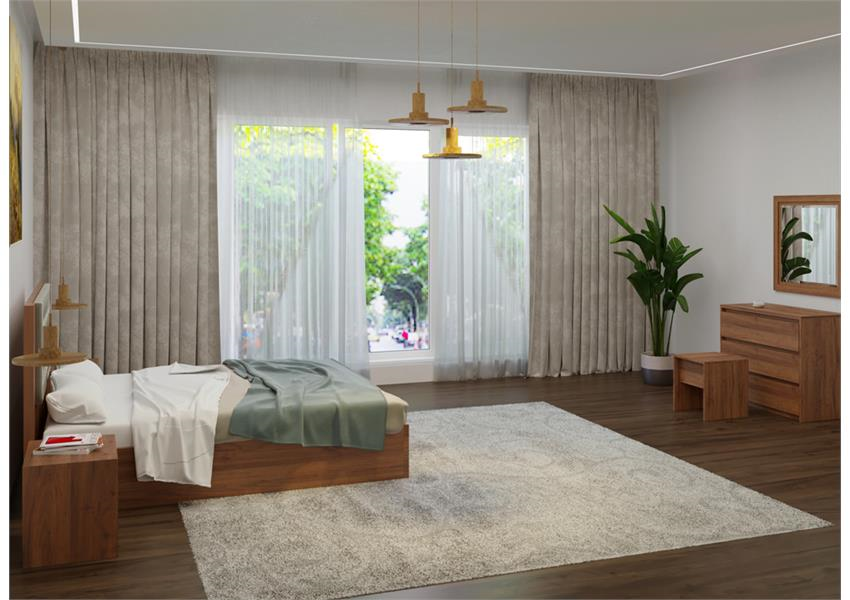 سری آورتین دارای سبد کاملی از محصولات شامل تخت خواب ، پا تختی کشو دار ، دراور، آینه و استول است.
