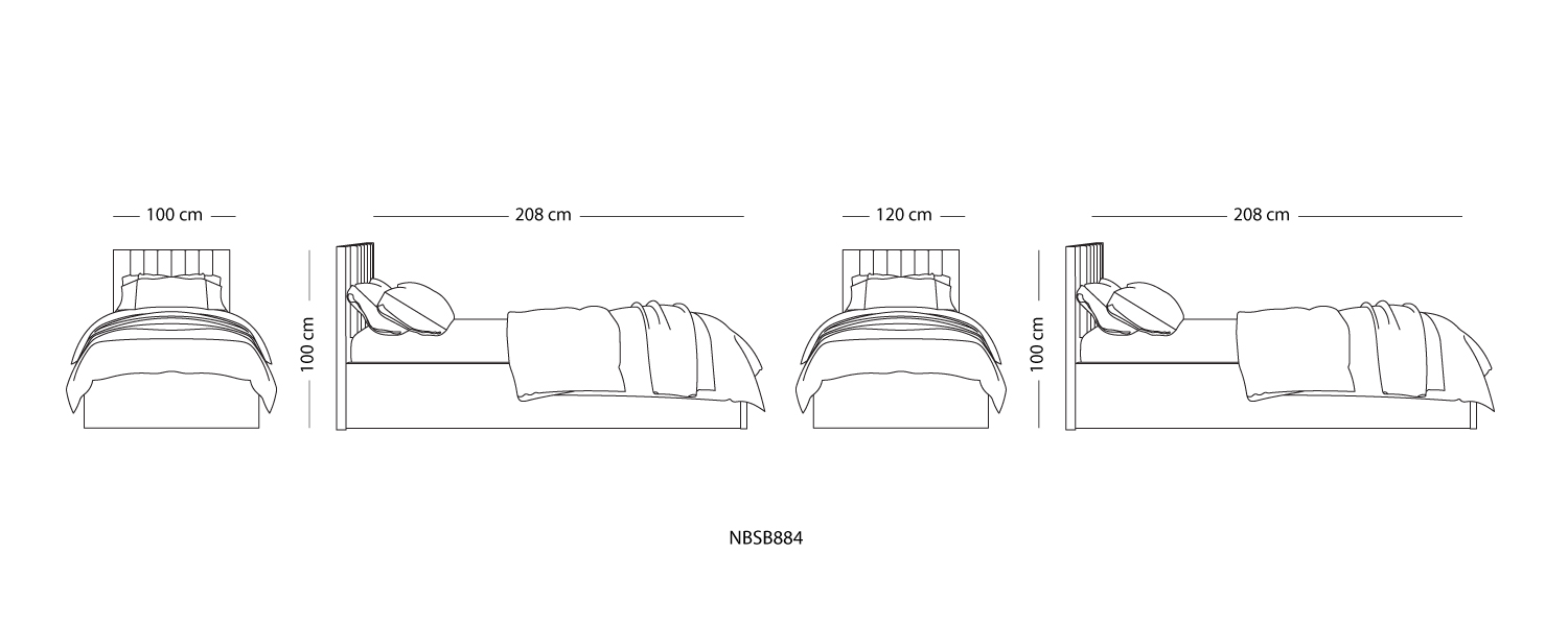 سرویس خواب آورتین علاوه بر تخت دو نفره، در مدل های تک نفره با ابعاد 90 و 120 نیز ارائه می شود.