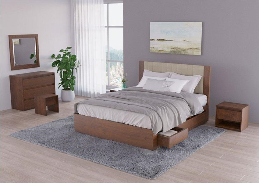 سری آورتین دارای سبد کاملی از محصولات شامل تخت خواب ، پا تختی کشو دار ، دراور، آینه و استول است