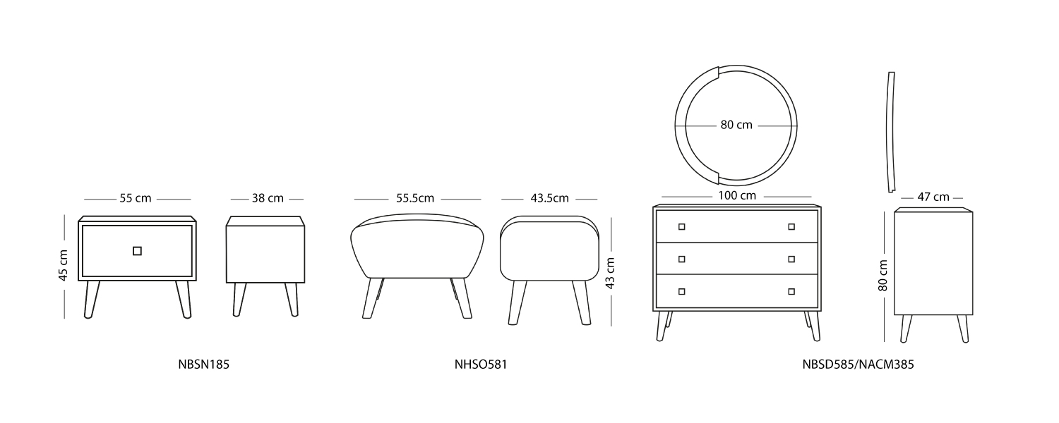 دراور ساخته شده از MDF با روکش چوب طبیعی و پایه های ساخته شده از چوب راش