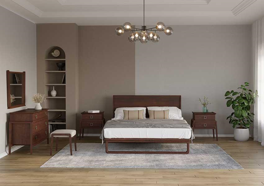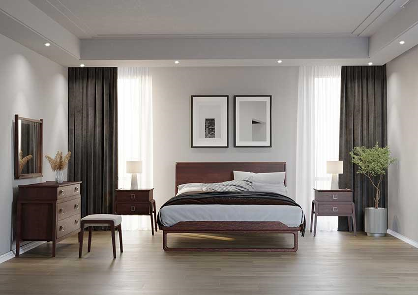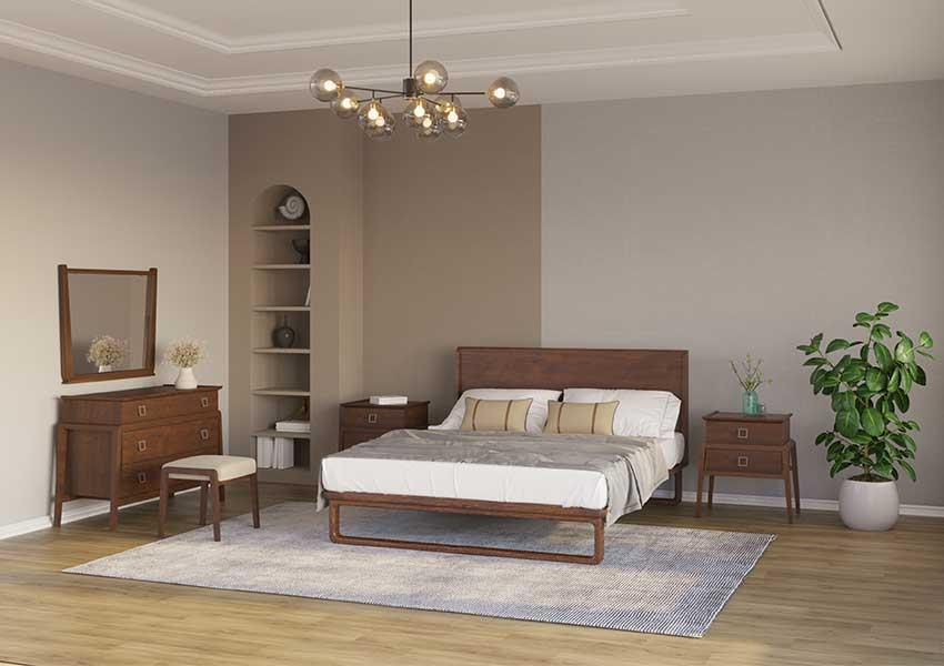 بدنه تخت خواب از جنس MDF با روکش چوب راش ساخته شده است