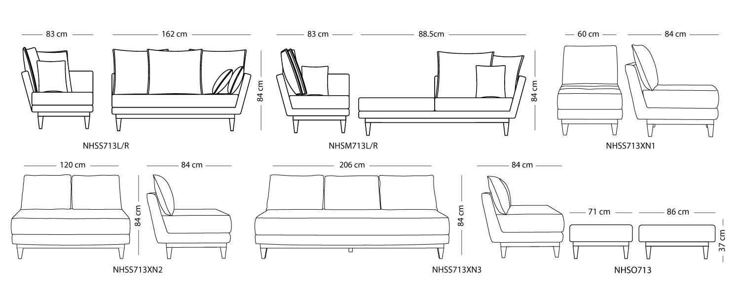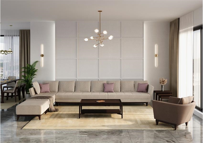 قابلیت تغییر چیدمان و افزایش تعداد نشیمن با اضافه کردن مبل های تک نفره،دو نفره وسه نفره بدون دسته به مبل ال بلرتو